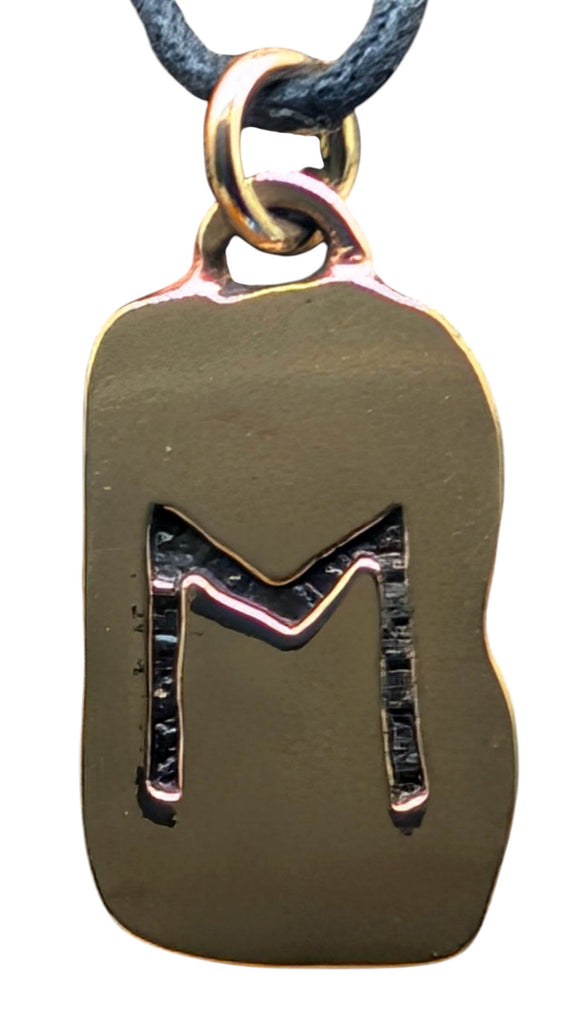 Kunstvoll gestaltetes Amulett aus Bronze mit eingravierter Ehwaz-Rune auf der Vorderseite. Die Rückseite ist glatt poliert.