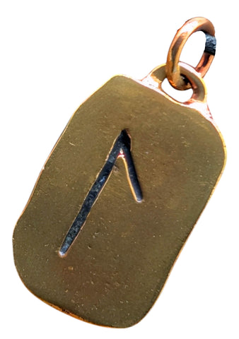 Kunstvoll gestaltetes Amulett aus Bronze mit eingravierter Laguz-Rune auf der Vorderseite. Die Rückseite ist glatt poliert.