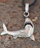 Kunstvoll gestalteter Anhänger aus Zinn/Pewter, Motiv "Hai". Der Kettenanhänger ist teilweise geschwärzt.
