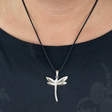 Kunstvoll gestaltete Libelle aus Edelstahl. Der Kettenanhänger ist glatt poliert.