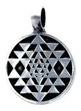 Kunstvoll gestalteter Sri Yantra-Anhänger aus Zinn/Pewter. Der Kettenanhänger ist teilweise geschwärzt.