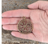 Kunstvoll gestalteter Kettenanhänger "Wikingerkompass" aus Bronze. Der Anhänger ist glatt poliert. Den Kompass umgibt ein Runenring. Für Damen und Herren.