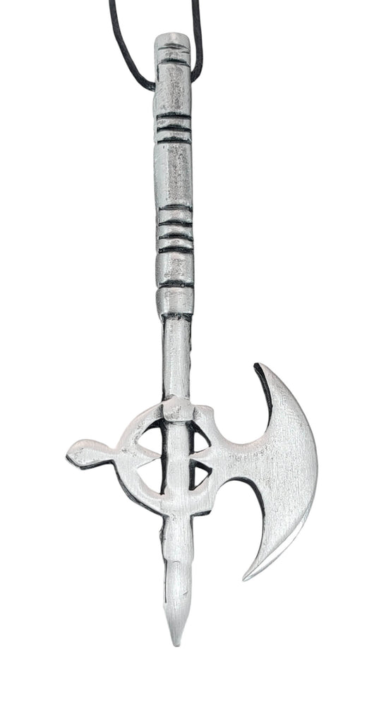 Kunstvoll gestalteter Anhänger aus Zinn/Pewter, Motiv "Axt". Der Kettenanhänger ist teilweise geschwärzt.