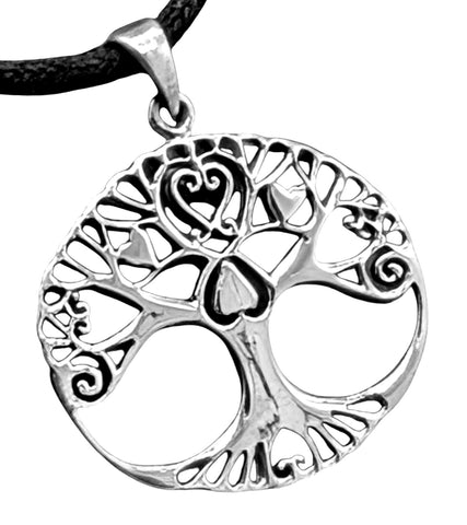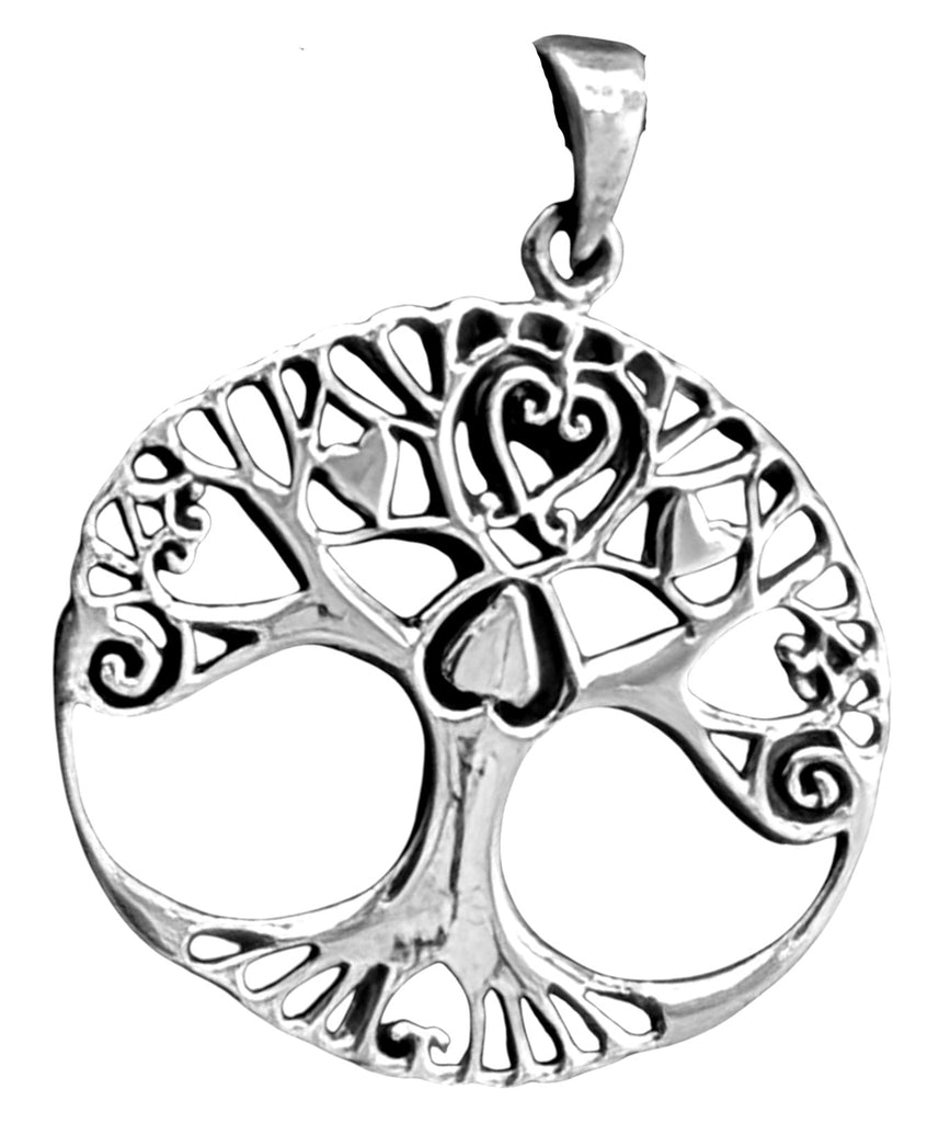 Romantischer Schmuckanhänger "Lebensbaum" aus 925 Sterling Silber. Der Anhänger ist glatt poliert, sodass das filigrane Design optimal zur Geltung kommt. Sowohl die Krone also auch der Stamm sind kunstvoll mit Herzchen verziert.