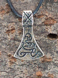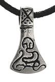 Zierliche, kunstvoll verzierte Wikingeraxt mit passender Schlangenkette aus 925 Sterling Silber. Die elegante Halskette ist ca. 0,8 mm dick. Wir haben vier verschiedene Längen im Angebot: 41 cm, 51 cm, 61 cm und 66 cm.