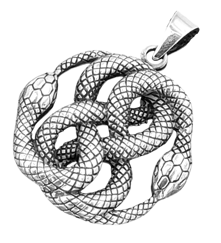 Kunstvoll gestalteter Schlangen-Anhänger aus 925 Sterling Silber. Die Vorderseite des Kettenanhängers ist teilweise geschwärzt, die Rückseite ist hohl. Für Damen und Herren.