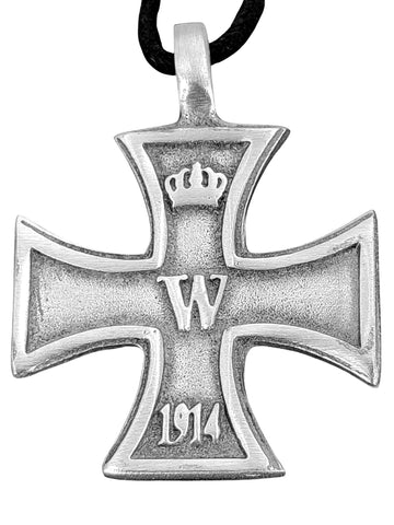 Kunstvoll gestalteter Anhänger aus Zinn/Pewter, Motiv "Eisernes Kreuz 1914". Der Kettenanhänger ist teilweise geschwärzt.