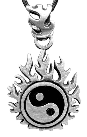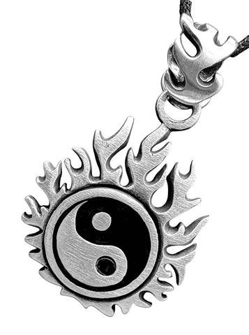 Kunstvoll gestalteter Kettenanhänger aus Zinn/Pewter, Motiv "Yin und Yang". Der Anhänger ist teilweise geschwärzt.