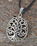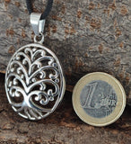 Schön gewölbter, detailreich gestalteter Schmuckanhänger "Lebensbaum" aus Edelstahl. Der Anhänger ist glatt poliert, sodass das kunstvolle Design optimal zur Geltung kommt.