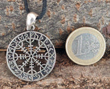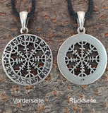Kunstvoll gestalteter Kettenanhänger "Helm der Ehrfurcht" aus 925 Sterling Silber. Der Anhänger ist teilweise geschwärzt, sodass das Design optimal zur Geltung kommt. Das Symbol ist von einem Runenring umgeben.