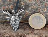 Kunstvoll gestalteter Cernunnos-Anhänger aus 925 Sterling Silber. Der Kettenanhänger ist auf der Vorderseite teilweise geschwärzt.