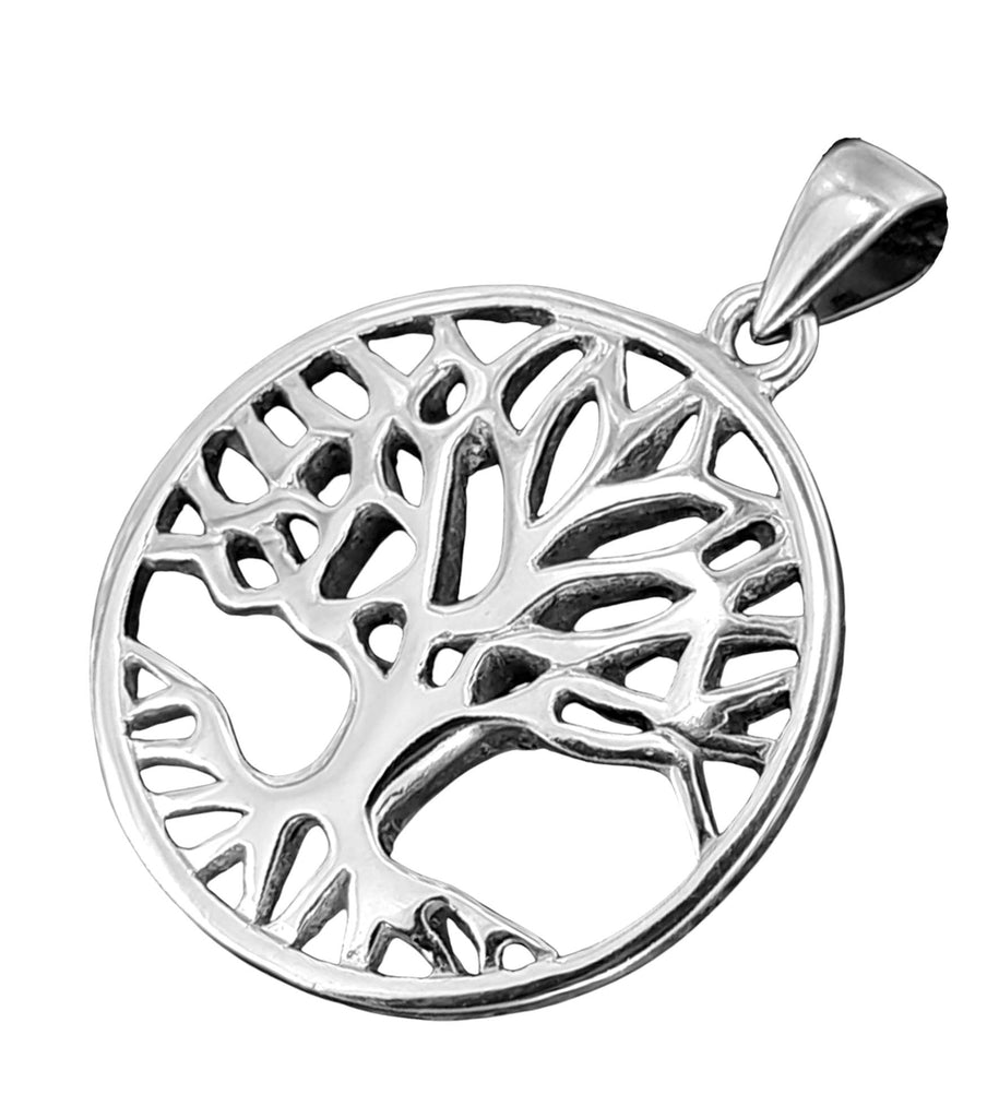 Detailreich gestalteterSchmuckanhänger "Lebensbaum" aus Edelstahl. Der Anhänger ist glatt poliert, sodass das kunstvolle Design optimal zur Geltung kommt.
