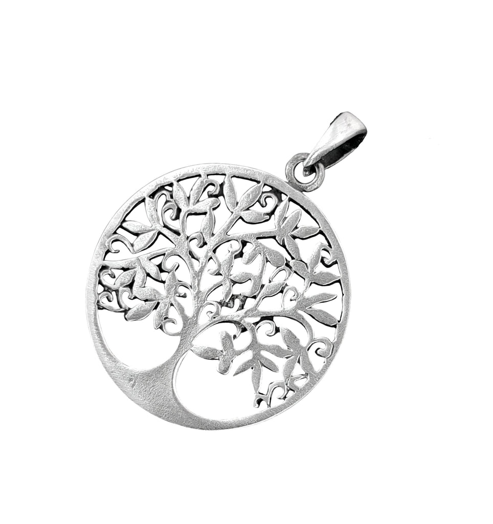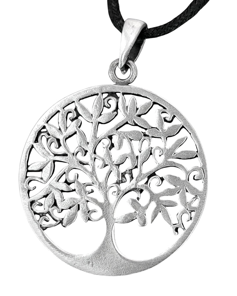 Detailreich gestalteterSchmuckanhänger "Lebensbaum" aus Zinn. Der Anhänger ist auf der Vorderseite teilweise geschwärzt, sodass das kunstvolle Design optimal zur Geltung kommt.