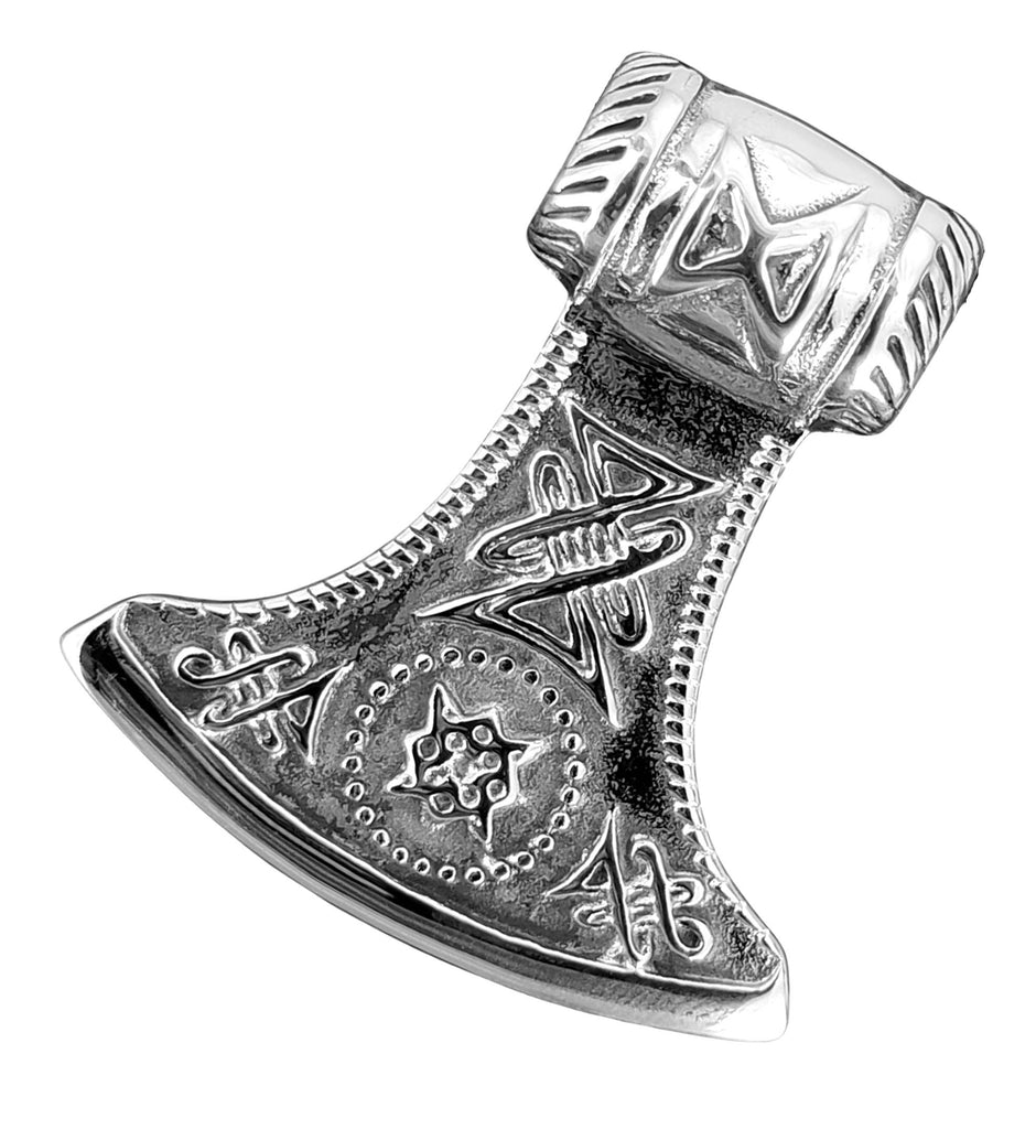 Große, schwere, kunstvoll gestaltete Wikingeraxt aus Edelstahl. Die Axt ist mit diversen Keltenknoten sowie der Dagaz-Rune verziert.