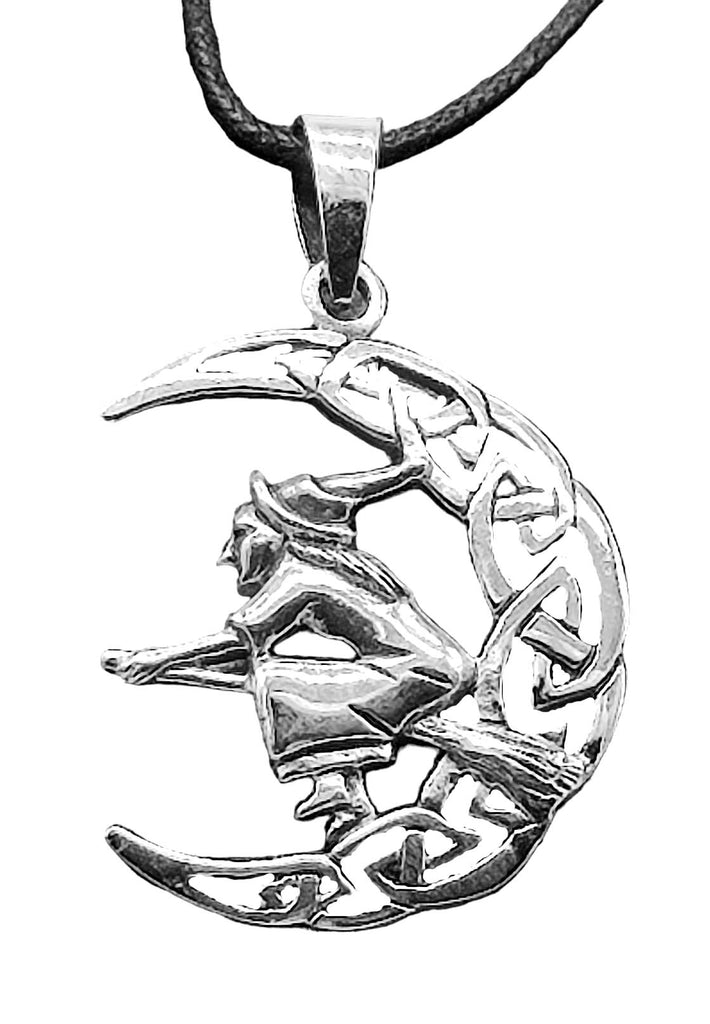 Dieser kunstvoll gestaltete Anhänger aus 925 Sterling Silber ist sowohl für Damen als auch für Herren geeignet. Der Kettenanhänger präsentiert eine meisterhaft gestaltete Szene einer Hexe im Mondlicht.