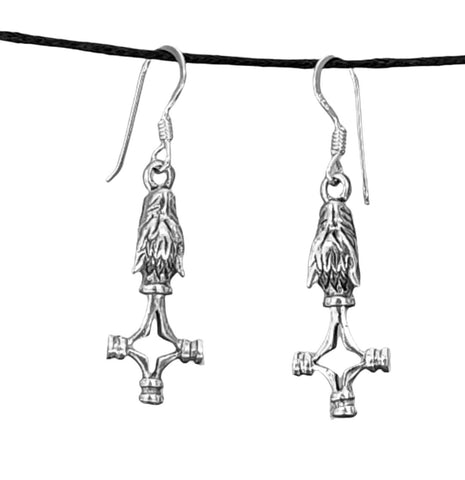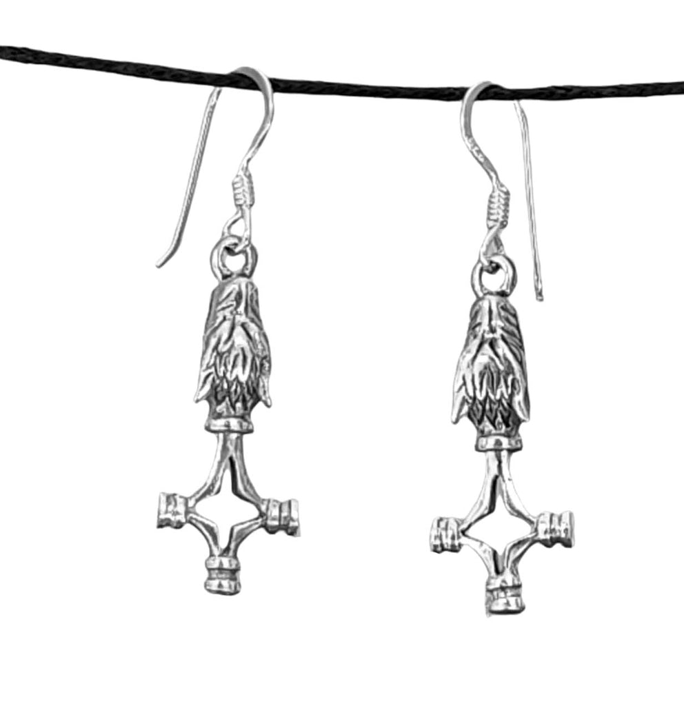 Kunstvoll gestaltete Wolfskreuz-Ohrhänger aus 925 Sterling Silber. Die Ohrringe sind teilweise geschwärzt, sodass das filigrane Design optimal zur Geltung kommt.