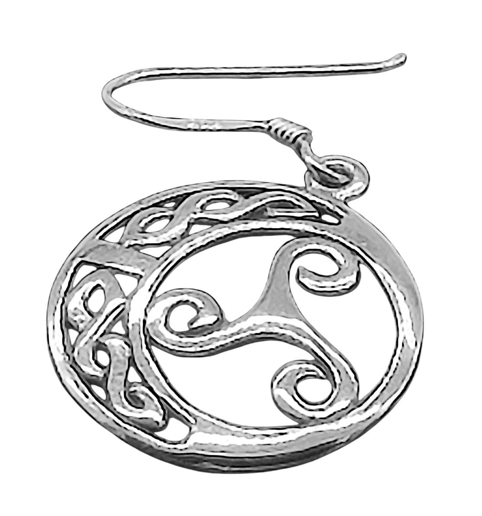 Kunstvoll gestaltete Ohrringe aus 925 Sterling Silber, Motiv "Triskele". Der Preis bezieht sich jeweils auf ein Paar.