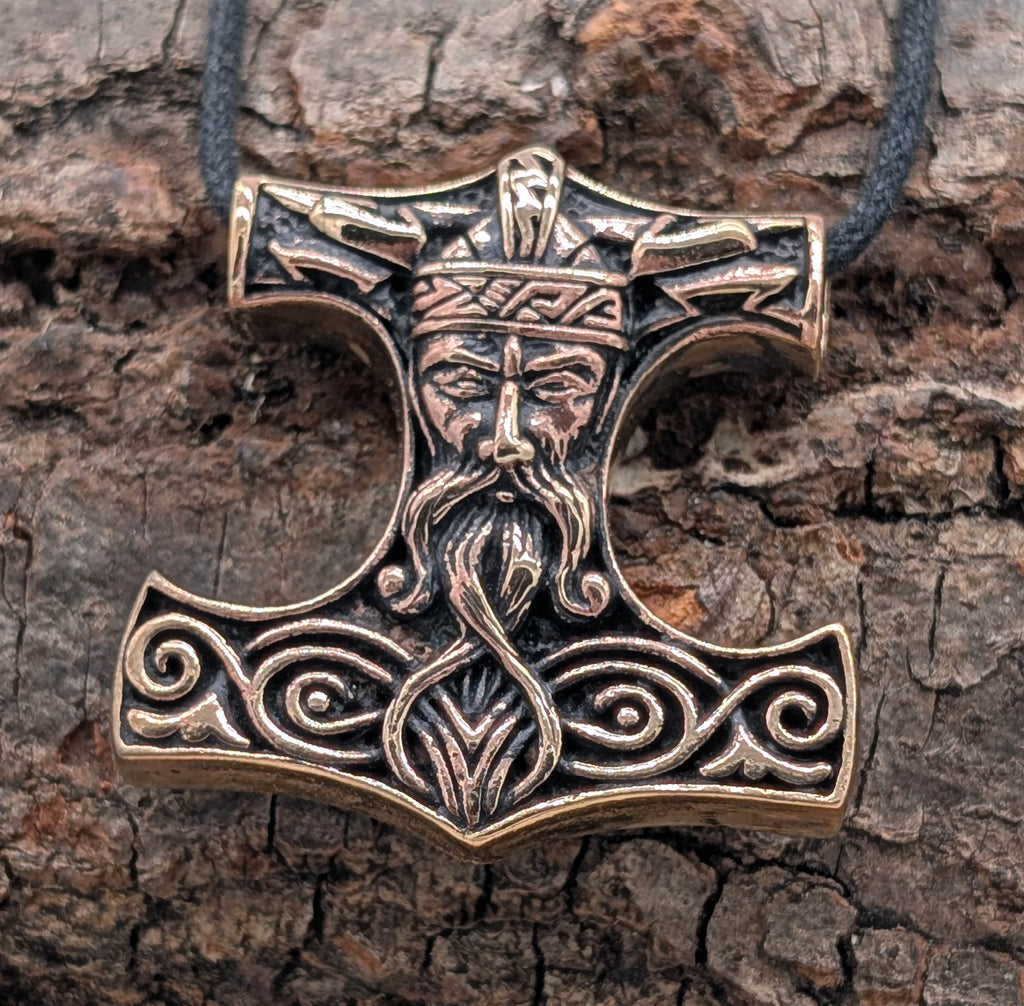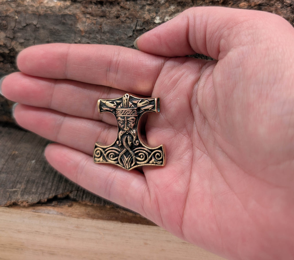 Großer, hochwertig verarbeiteter Kettenanhänger "Thorshammer" aus Bronze.