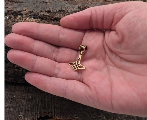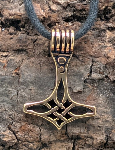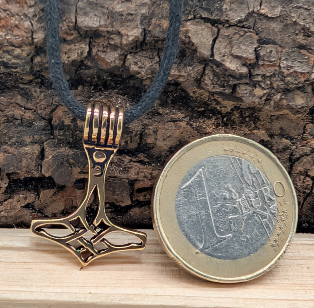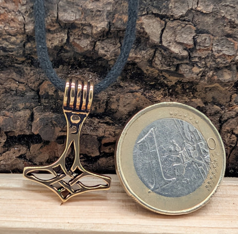 Zierlicher, elegant geschwungener Thorshammer-Anhänger aus Bronze.