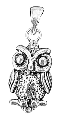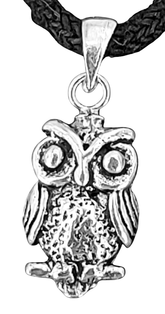 Zierliche, kunstvoll gestaltete Eule aus 925 Sterling Silber. Der Kettenanhänger ist auf der Vorderseite teilweise geschwärzt.