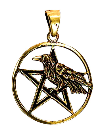 Kunstvoll gestaltete Kombination aus Pentagramm und Rabe aus Bronze. Der Schmuckanhänger ist auf der Vorderseite teilweise geschwärzt, sodass das filigrane Design optimal zur Geltung kommt. Die Rückseite ist glatt poliert.